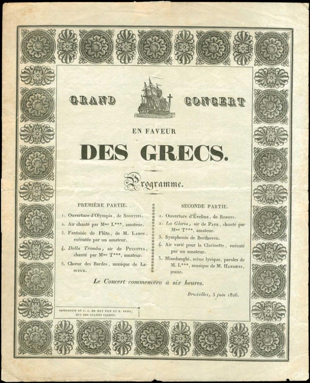 We have read this title thousands of times in the media from 1981 until today. But this is not something new. Here we see, from the collection of SHP, the program of June 3, 1826, of one of the many concerts that took place in favor of the Greeks in Europe. The aim of these events was to raise money for the financial support of the Greeks, and to promote the rights of Greece.
