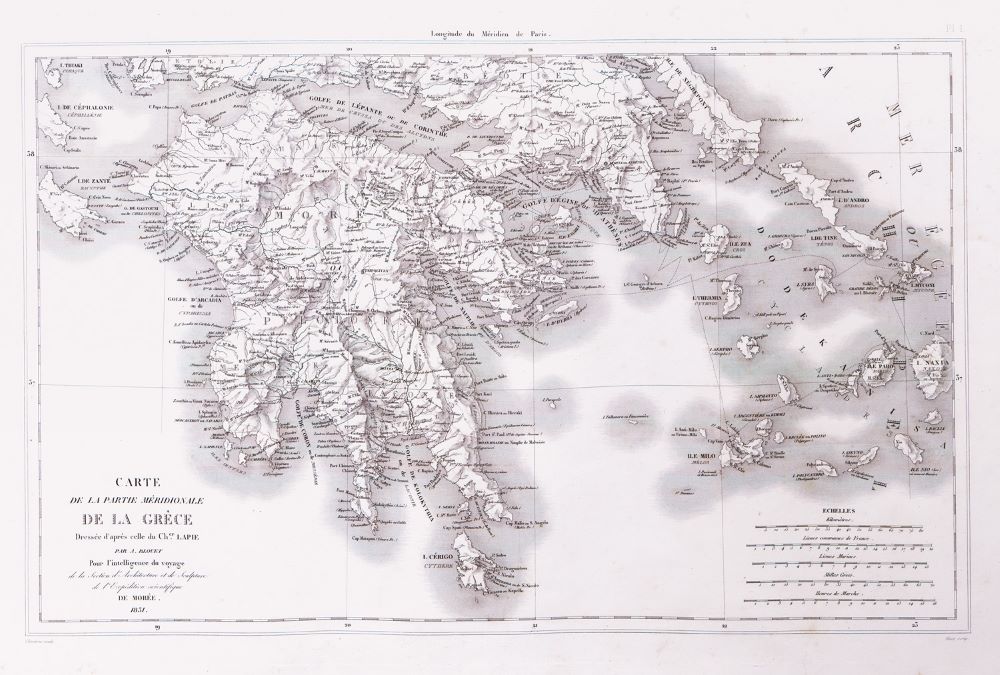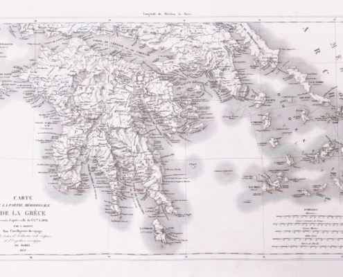 The French Scientific Mission of Morea (also referred as “Morea Expedition”) consisted of three Departments of specialists in natural sciences, archaeology and fine arts and a Topographic Company of 25 army engineers. The findings of the work were published in maps and in 8 imposing volumes between 1831 and 1838, which are accompanied by significant pictorial and cartographic documentation.