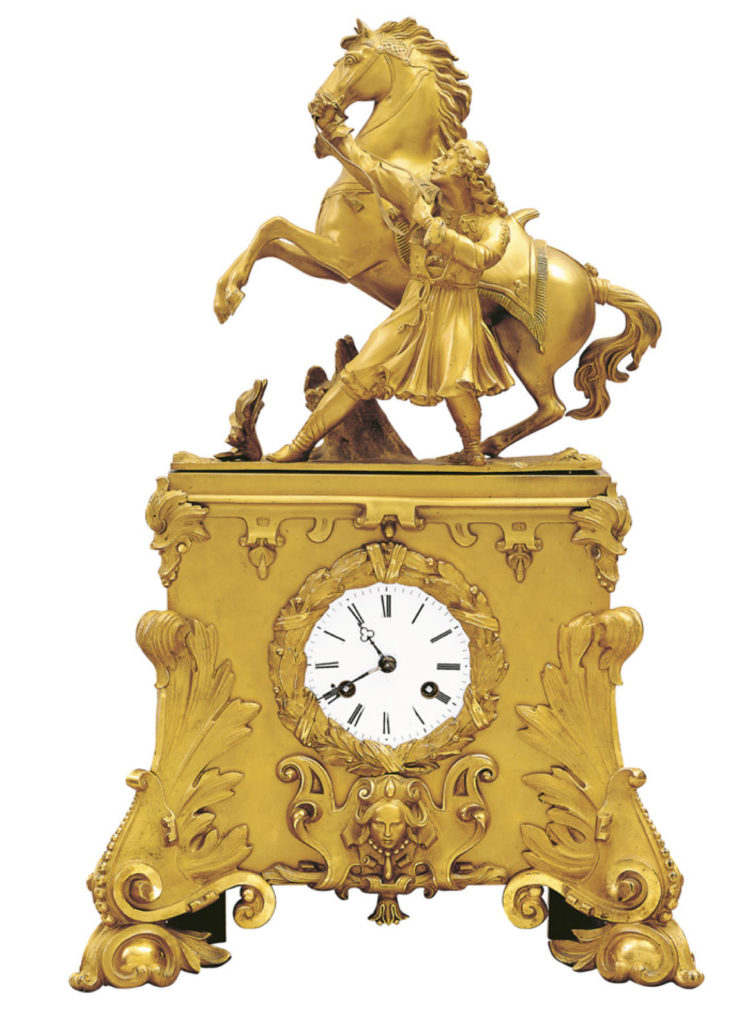 Ρολόι με Έλληνα που συγκρατεί άλογο (β΄ τέταρτο 19ου αιώνα)
